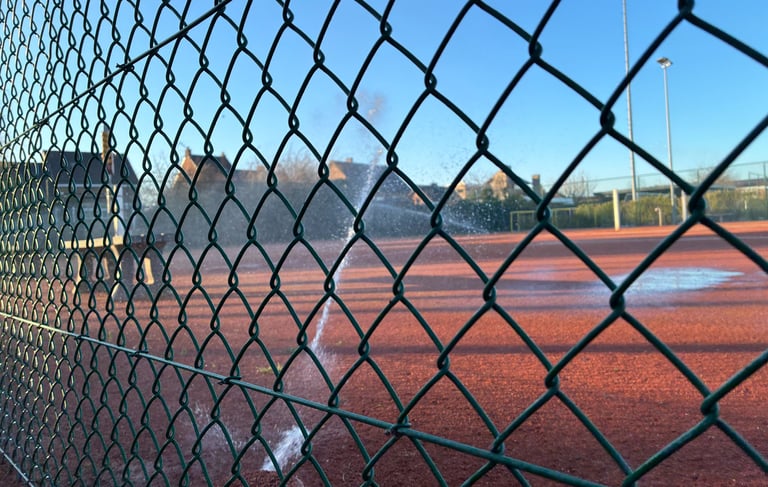 Kwaliteit van de tennisterreinen gaat sterk achteruit bij te weinig sproeien.